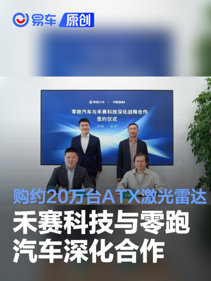易车讯日前,零跑汽车与禾赛科技在零跑科技总部正式达成深化战略合作。后续零跑预计将采购约20万台的禾赛ATX激光雷达,覆盖零跑2025年起多款量产车型。